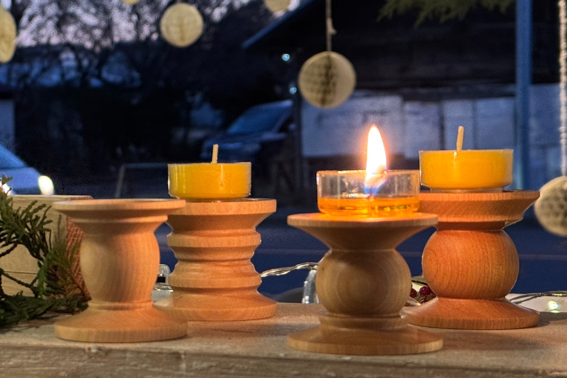 蜜蝋のティーライトをひとつ付けてお送りします。